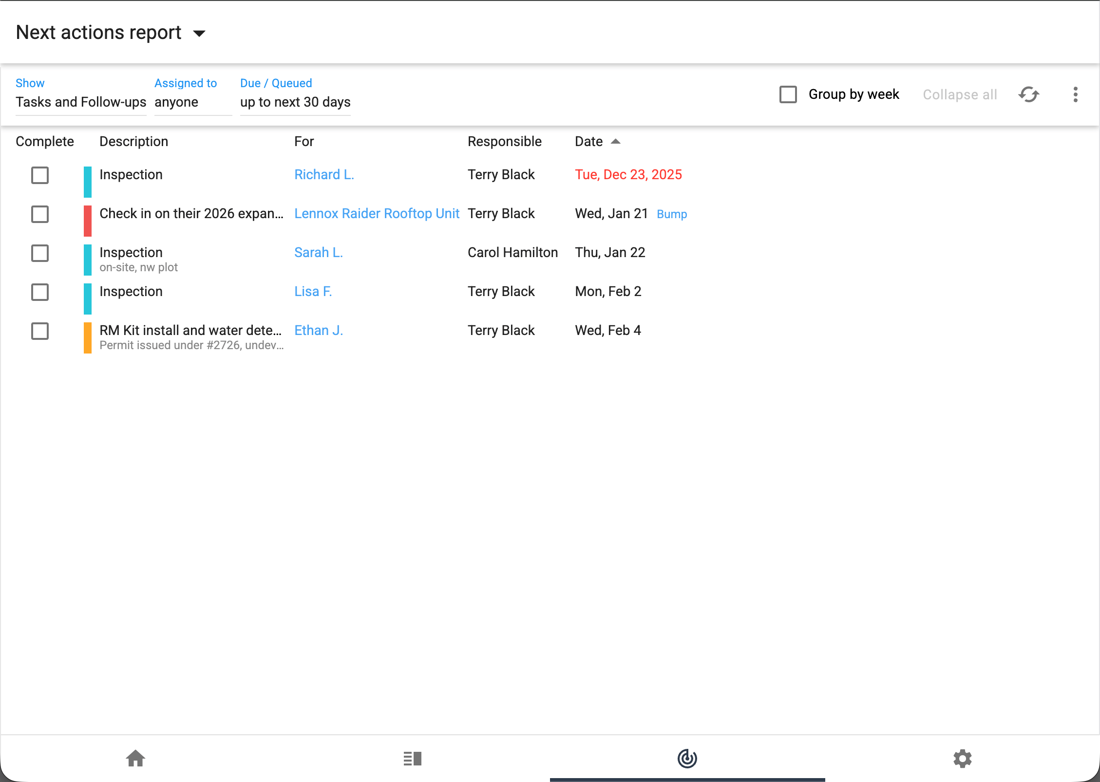 Shows a focused list of upcoming and overdue tasks and follow-ups, helping individuals start their day knowing exactly what needs to be done.